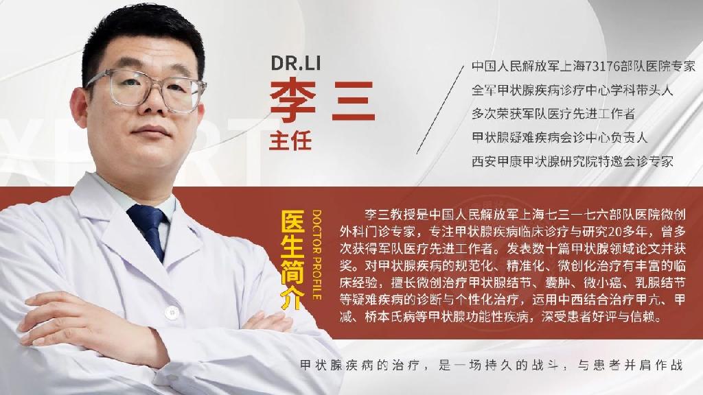 擅长:甲状腺肿瘤、乳腺结节、单纯性甲状腺肿、甲状腺良性肿瘤、甲状腺囊肿、甲状腺微小癌、甲状腺结节、甲状腺疾病