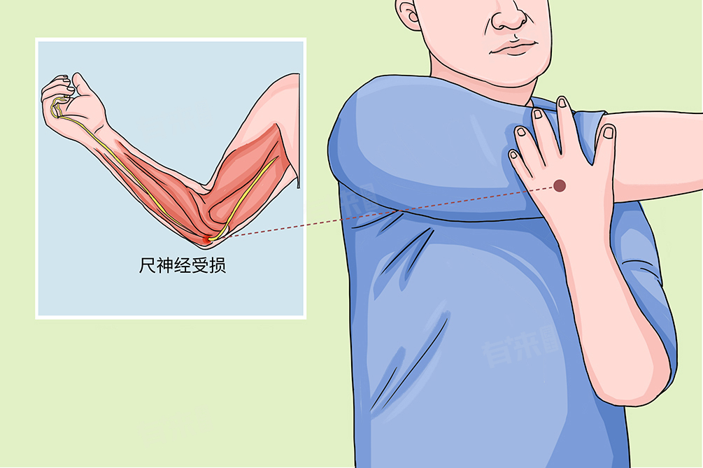 - 肘管综合征:当尺神经在肘管内受到压迫时,患者会感到手臂内侧的麻木,并可能波及小指。肘关节也可能出现肿胀、活动受限等症状。