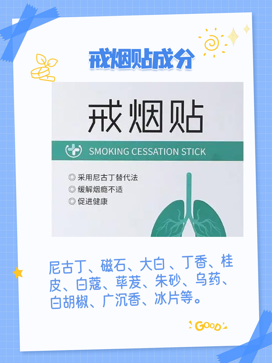 - 戒烟贴作为辅助工具,可以在一定程度上帮助戒烟者缓解戒断症状,提高戒烟的成功率。但需要注意的是,并不能单独解决戒烟的所有问题,还需要戒烟者自身的努力和坚持。