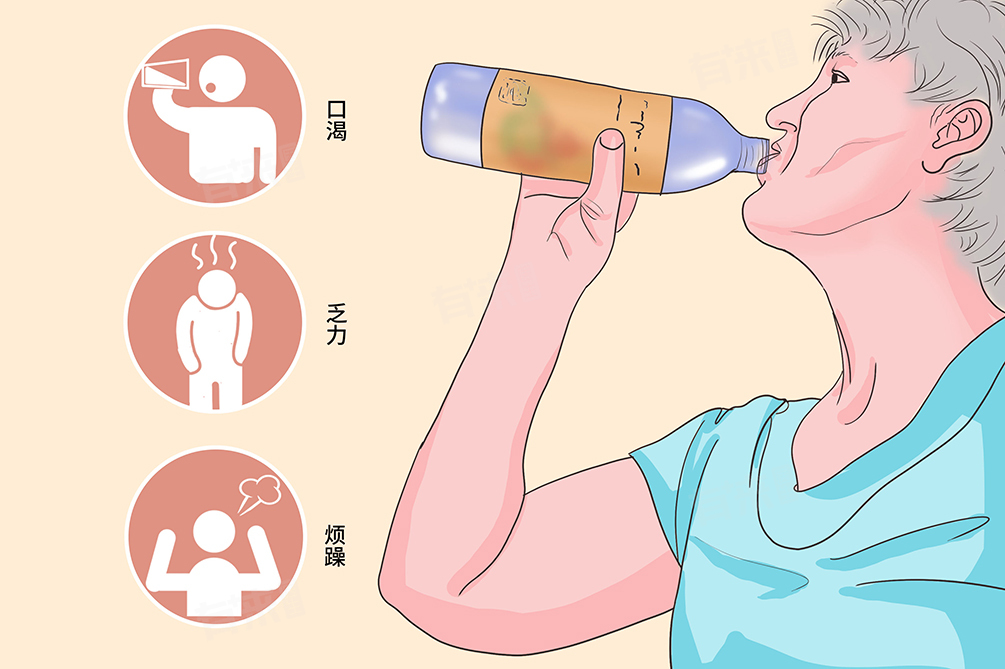 - 高渗性脱水:轻度脱水时,患者主要表现为口渴。中度脱水时,除口渴加剧外,还伴有乏力、尿少、唇舌干燥、皮肤弹性差、眼窝凹陷等。重度脱水时,患者会出现躁狂、幻觉、谵妄,甚至昏迷。