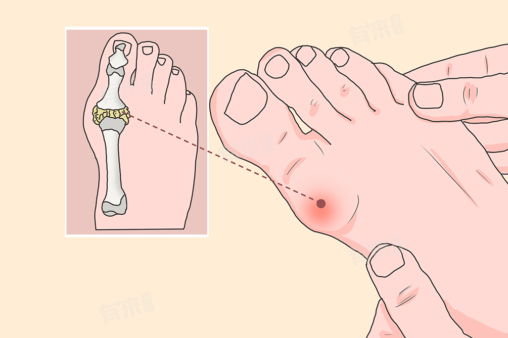 4、痛风性关节炎:由于体内尿酸代谢异常,血液中尿酸水平升高,尿酸盐结晶沉积在关节内,引发炎症反应。常见于第一跖趾关节,也可累及手部关节,关节疼痛剧烈,多在夜间突然发作,局部红肿热痛。