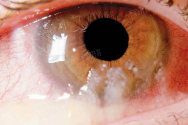 3、角膜炎:角膜炎是由于角膜的防御能力减弱,外界的病原体或自身的疾病会对眼角膜组织造成刺激引发炎症。在角膜炎早期,炎症会导致角膜表面的细胞坏死、脱落,形成白色拉丝分泌物。角膜炎患者常伴有疼痛、视力障碍、眼睑痉挛等症状。