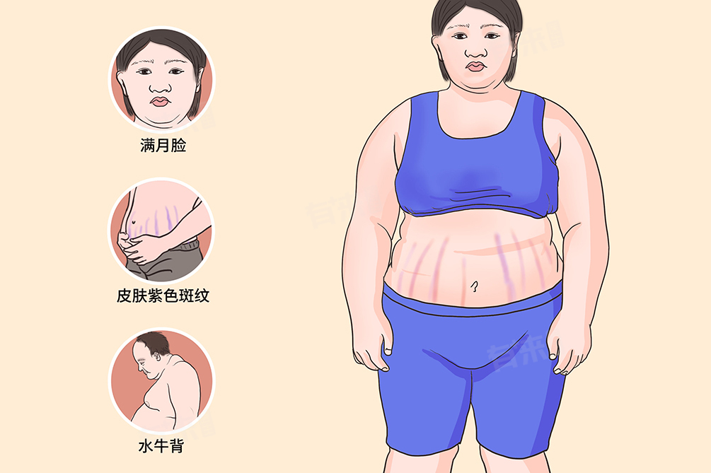 - 体重增加:皮质醇水平升高会导致脂肪在身体特定区域堆积,尤其是腹部、颈部和面部,形成满月脸和水牛背。这是因为皮质醇促进脂肪合成和抑制脂肪分解,导致脂肪分布失衡。
