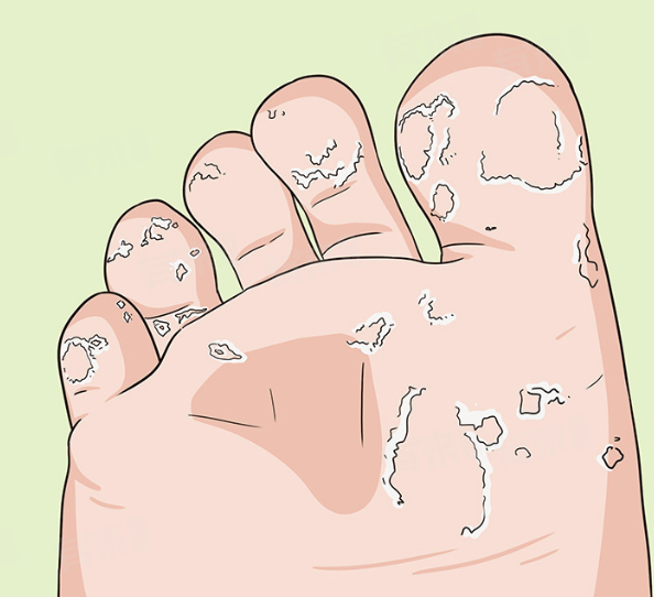 3、真菌感染:脚气(足癣)是最常见的导致脚底脱皮的原因,由真菌感染引起。这种疾病会侵犯脚部的浅层皮肤,导致皮肤干燥、粗糙、脱皮和变厚,并伴有瘙痒感。真菌感染容易在潮湿、温暖的环境中滋生,因此保持脚部干燥、透气非常重要。