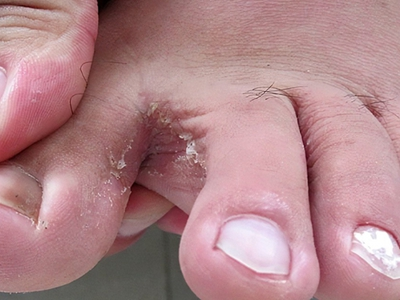- 由真菌感染引起,表现为脚趾缝红斑、瘙痒、糜烂、脱屑等症状。