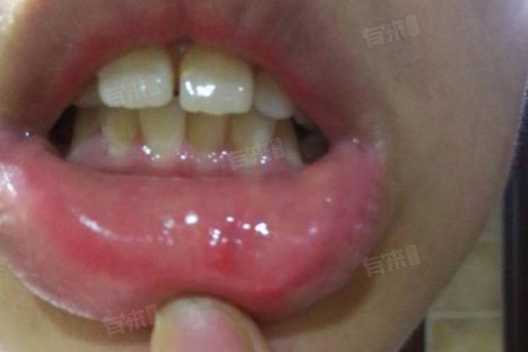 3、黏液腺囊肿:下唇黏膜下分布着许多小黏液腺,当腺体导管堵塞,黏液潴留,就会形成囊肿,外观表现为透明水泡。多因轻微外伤,如咬伤等致使导管损伤。对于较小囊肿,可先观察;若囊肿反复出现或逐渐增大,一般需手术切除,切除后需注意口腔卫生,预防感染。
