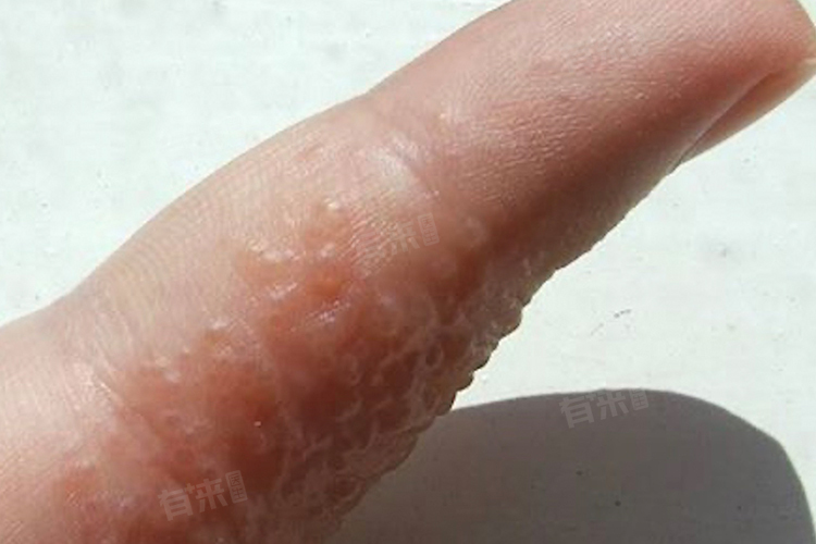 病因尚不明确,可能与过敏、精神因素等有关,在手指侧面或手掌可出现小水疱,干涸后可形成白色小凸起,避免接触刺激性物质,可遵循医生的建议外用糖皮质激素药膏缓解状,