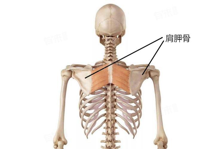 - 肩胛骨是人体上肢骨骼结构的一部分,位于后背部左、右上角。肩胛骨整体形态类似于倒三角形,上端水平位置大概在人体第二对肋骨或第二节胸椎的水平位置。肩胛骨的下角,则处于第七对肋骨或第七肋间隙的水平位置。由于个体发育差异,有些人肩胛下角更靠近第七节胸椎,而有些人则更靠近第八节胸椎。