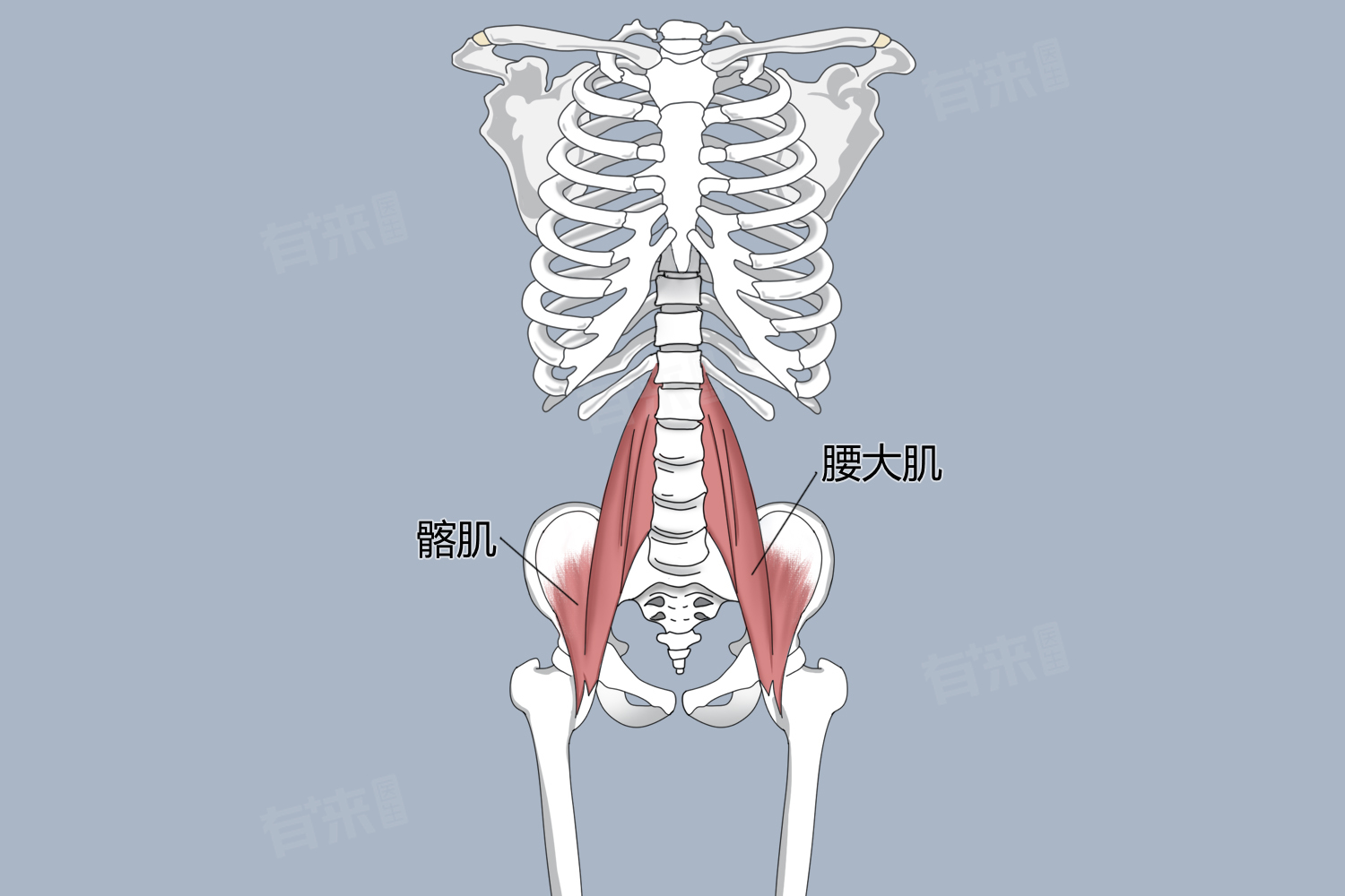 髂腰肌位于腰背部与髋部之间,由腰大肌和髂肌两块肌肉构成,其起点分别位于脊柱腰部两侧和骨盆髂窝,止点则位于股骨小转子。