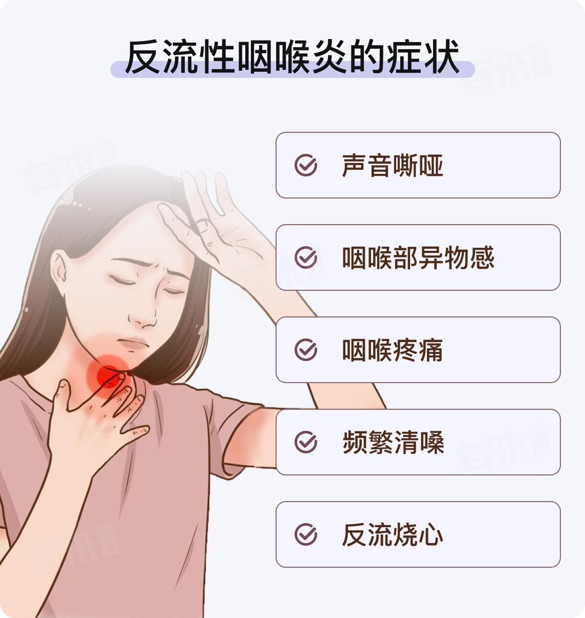 反流性咽喉炎的症状包括咽喉部异物感、声音嘶哑、咳嗽、咽喉疼痛等,建议患者积极就诊,在专业医生的指导下进行治疗,不要讳疾忌医。