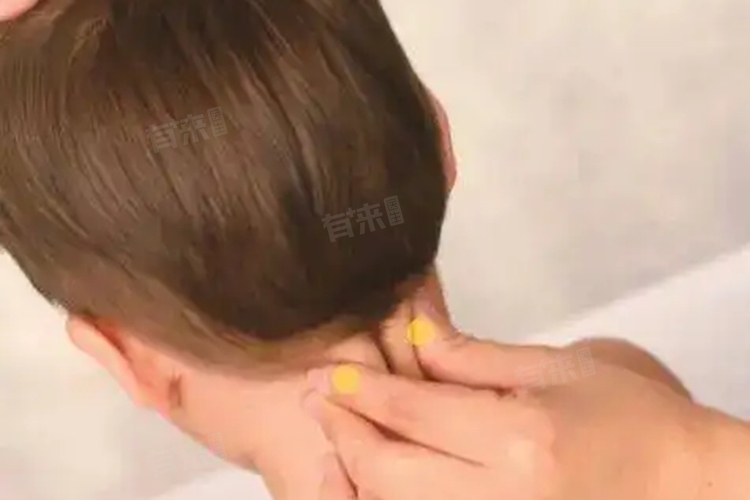 接触过敏原后风池穴下方可能出现红肿、瘙痒的包块,按压时疼痛,建议遵医嘱口服氯雷他定片、盐酸西替利嗪片等抗过敏药物,避免接触过敏原。