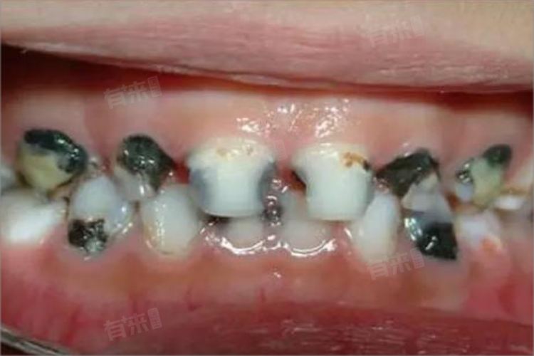 6、牙髓坏死:牙髓因外伤、炎症等原因坏死,牙齿失去营养供应,会逐渐变色,可能呈现黑色,这种情况往往伴有牙齿疼痛、松动等症状。