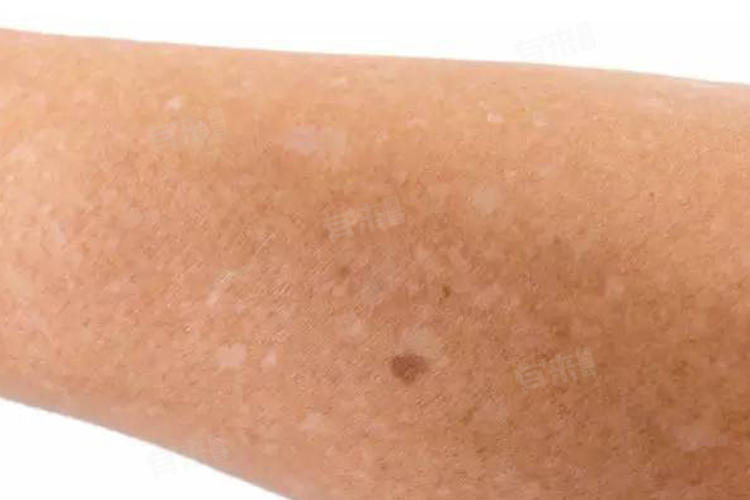 2、老年性白点病:随着年龄的增长,皮肤中的黑色素细胞数目逐渐减少,导致皮肤出现色素不均的现象,手臂上可能出现大小不一的白斑,是皮肤老化的自然表现之一,无需特殊治疗。