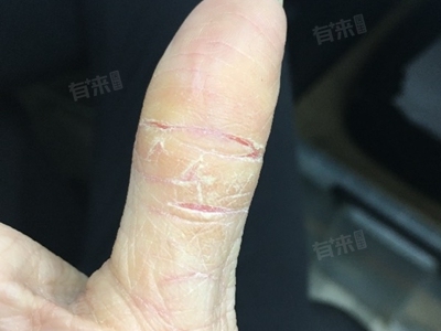 5、湿疹:湿疹是一种常见的皮肤炎症,可能与遗传、过敏、免疫等因素有关。手部湿疹常表现为手部皮肤出现红斑、丘疹、水疱,伴有瘙痒,病情反复发作后,皮肤会逐渐增厚、粗糙,出现裂口,尤其在手指关节处更为常见。