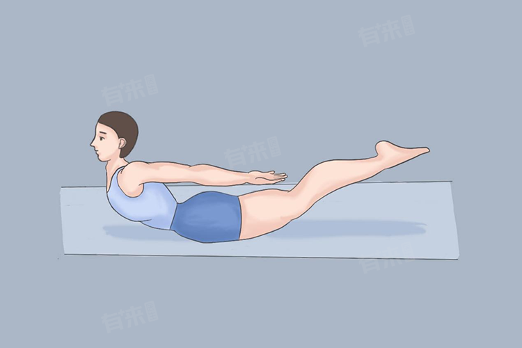 5、小飞燕训练:俯卧在床上,双臂放于身体两侧,双腿伸直,然后将头、上肢和下肢用力向上抬起,离开床面,形似飞燕。该训练能有效锻炼颈背部深层肌肉,增强颈椎的支撑力,对缓解颈椎突出症状有积极作用。