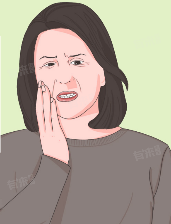 长时间咀嚼口香糖、坚硬食物,或夜间磨牙,使咀嚼肌持续紧张。表现为腮帮子发酸、轻度胀痛。治疗时减少咀嚼硬物,摒弃嚼口香糖习惯,夜间磨牙者可佩戴咬合垫。并对咀嚼肌热敷,每日数次,每次15分钟左右,助肌肉放松缓解不适。