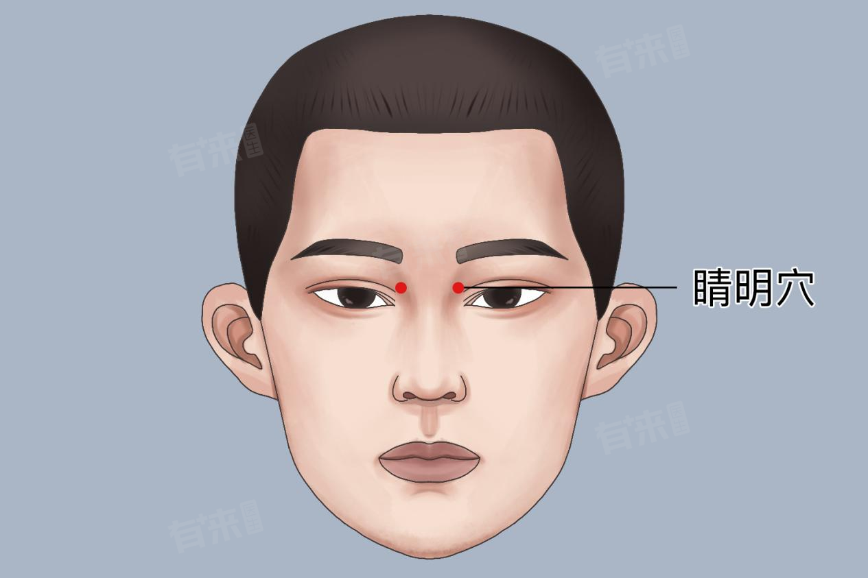 1、睛明穴:位于眼内眦内1分许,属膀胱经。按摩此穴可缓解目赤肿痛、视物不清等症状,有助于消除眼疲劳。