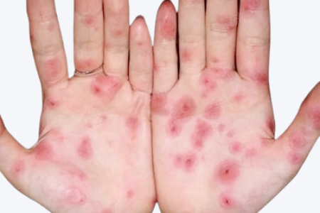 2、荨麻疹:荨麻疹是由于皮肤、黏膜小血管扩张及渗透性增加出现的局限性水肿反应,手部表现为大小不等、形态不一的红色风团,发作迅速,消退后不留痕迹,伴有明显瘙痒,建议遵医嘱口服氯雷他定片、盐酸西替利嗪片等药物治疗。