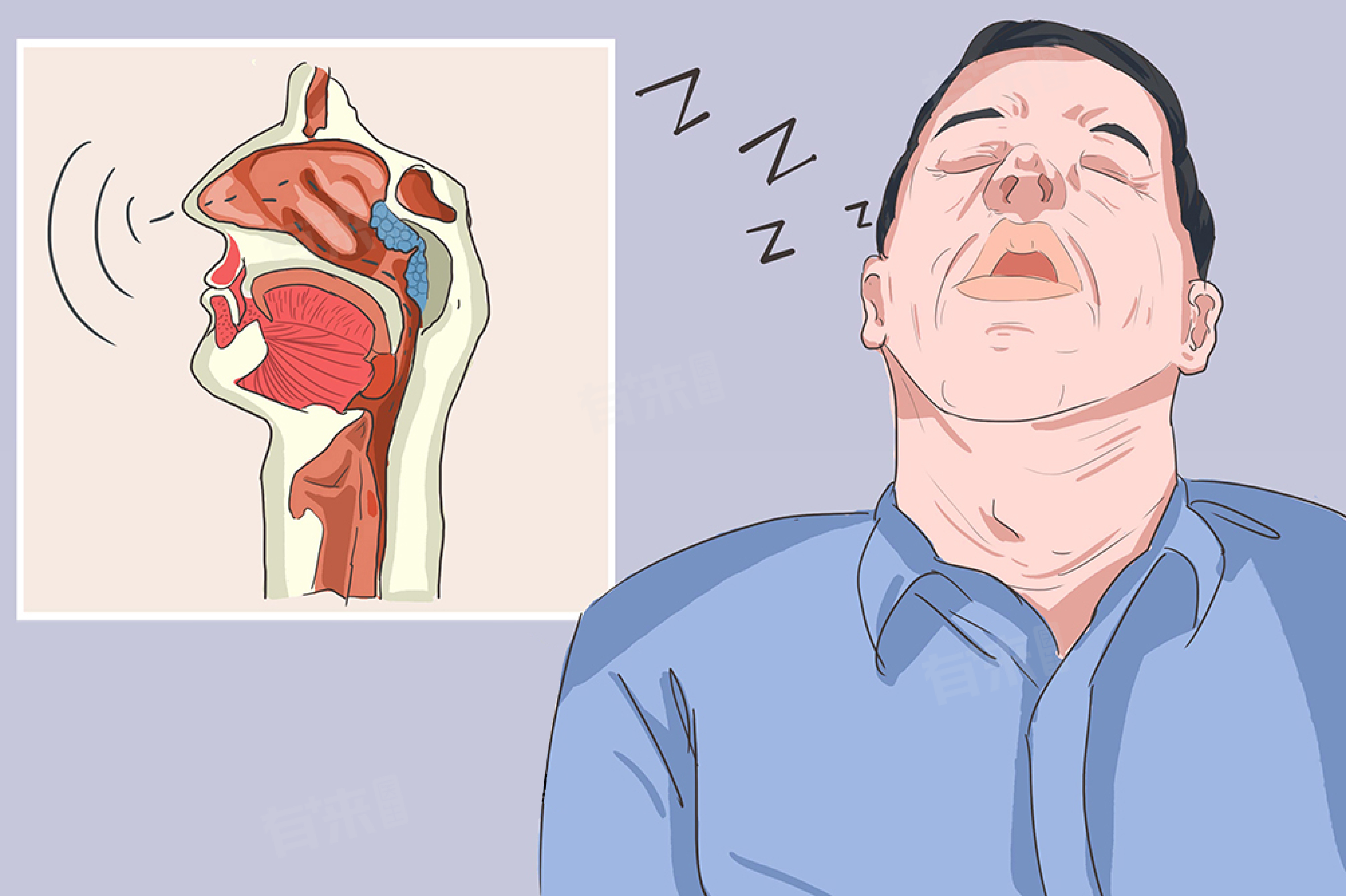 - 睡眠呼吸暂停综合征:包括中枢性、阻塞性及复杂性睡眠呼吸暂停综合征,此类疾病会导致夜间呼吸暂停、憋醒、多动不安等症状,进而引发打鼾。
