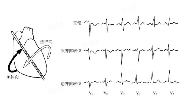 - 心脏位置异常:如右位心或心脏在胸腔内的位置发生改变,也可能导致心电图上出现逆钟向转位。