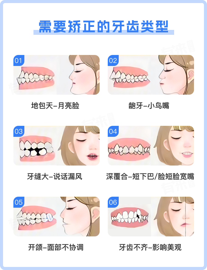 4、隐形矫正:隐形矫正适用于对美观要求较高、牙齿问题相对较轻的青少年和成年人。隐形矫正通过一系列透明的、可摘戴的矫正器,逐步引导牙齿移动到正确的位置。