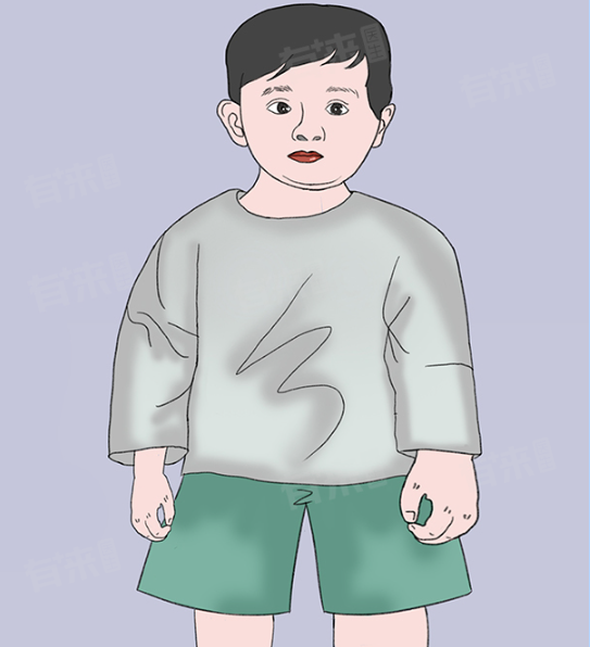 5、软骨发育不全:这是一种常染色体显性遗传病,由基因突变导致长骨骨骺端软骨细胞形成及骨化异常,孩子表现为四肢短小、躯干正常。