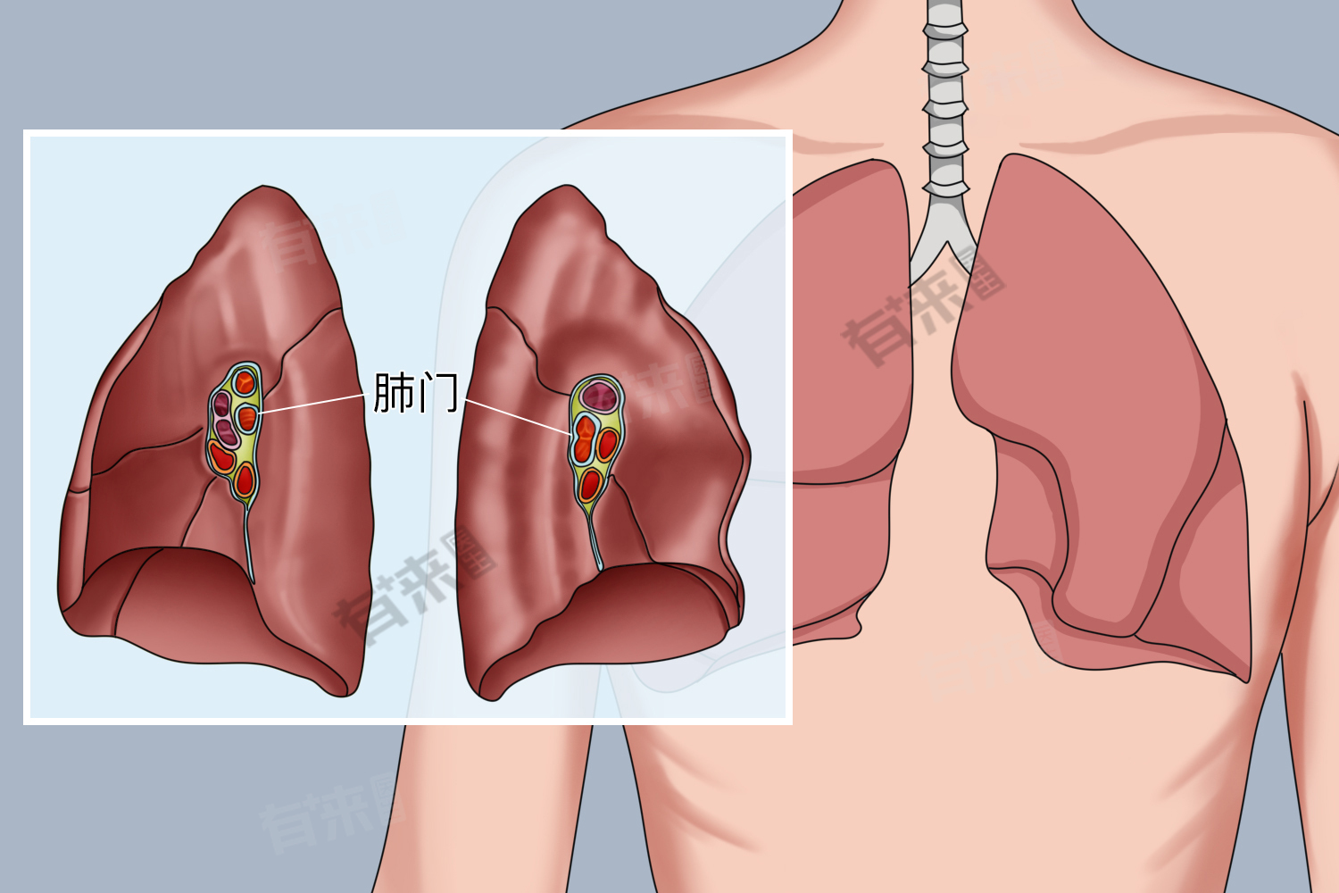 1、位置:肺门位于肺尖向下约上1/3部位的凹陷处,体表定位于第2-4前肋之间的部位。左右肺各有一个肺门,分别对应左右主支气管及其伴行的血管、神经淋巴管进入肺的部位。