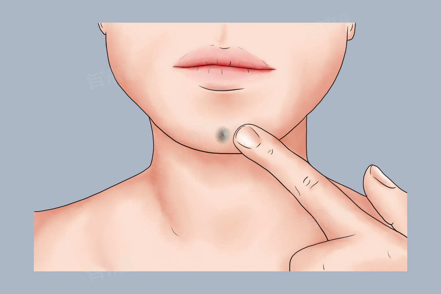 4、颏下皮样囊肿:为先天性疾病,是由于胚胎发育时期遗留于组织中的上皮细胞发展而形成的囊肿。主要的治疗方法是手术切除,手术应尽量完整切除囊肿,避免残留囊壁组织,以防止复发。