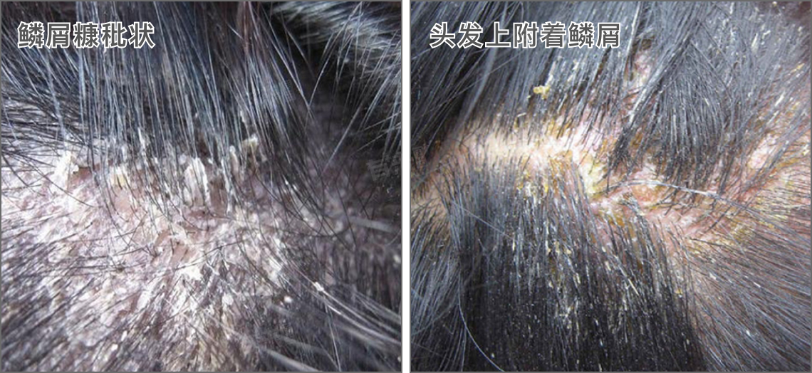 - 头皮油脂分泌旺盛,显得油亮,鳞屑多为油腻性,这是由于皮脂腺分泌功能亢进所致。头皮上可见弥漫性、灰白色的糠秕样鳞屑,较细小,严重时可融合成大片,梳头或搔抓时鳞屑容易脱落。