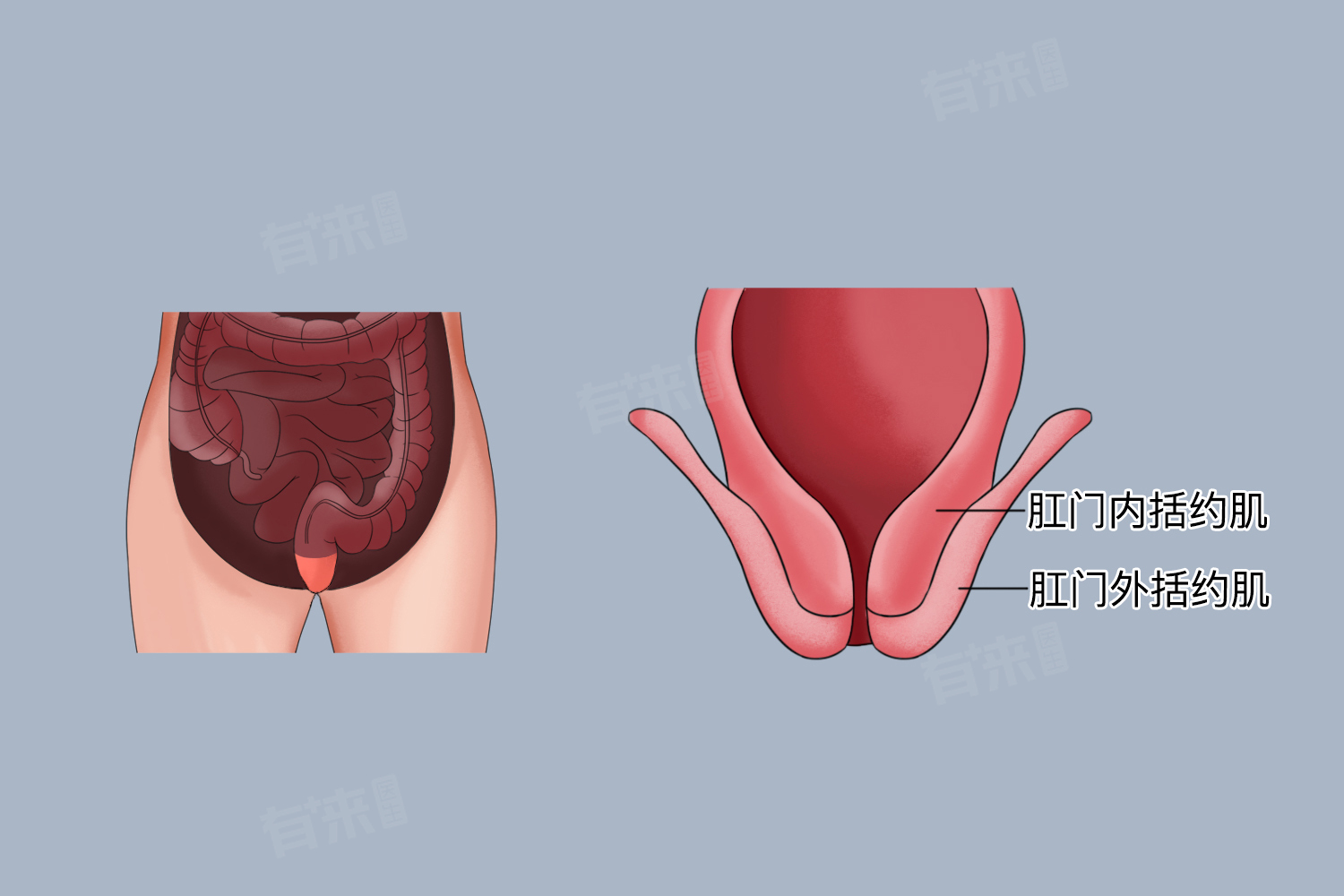 2、肛门括约肌:肛门括约肌位于肛门周围,是控制排便的关键肌肉。肛门括约肌分为肛门内括约肌和肛门外括约肌两部分。肛门内括约肌是肠道末端的一部分平滑肌,主要负责在肠道压力升高时保持肛门的闭合状态。而肛门外括约肌则环绕肛门开口,能够受意识控制地收缩和舒张,从而控制排便过程。
