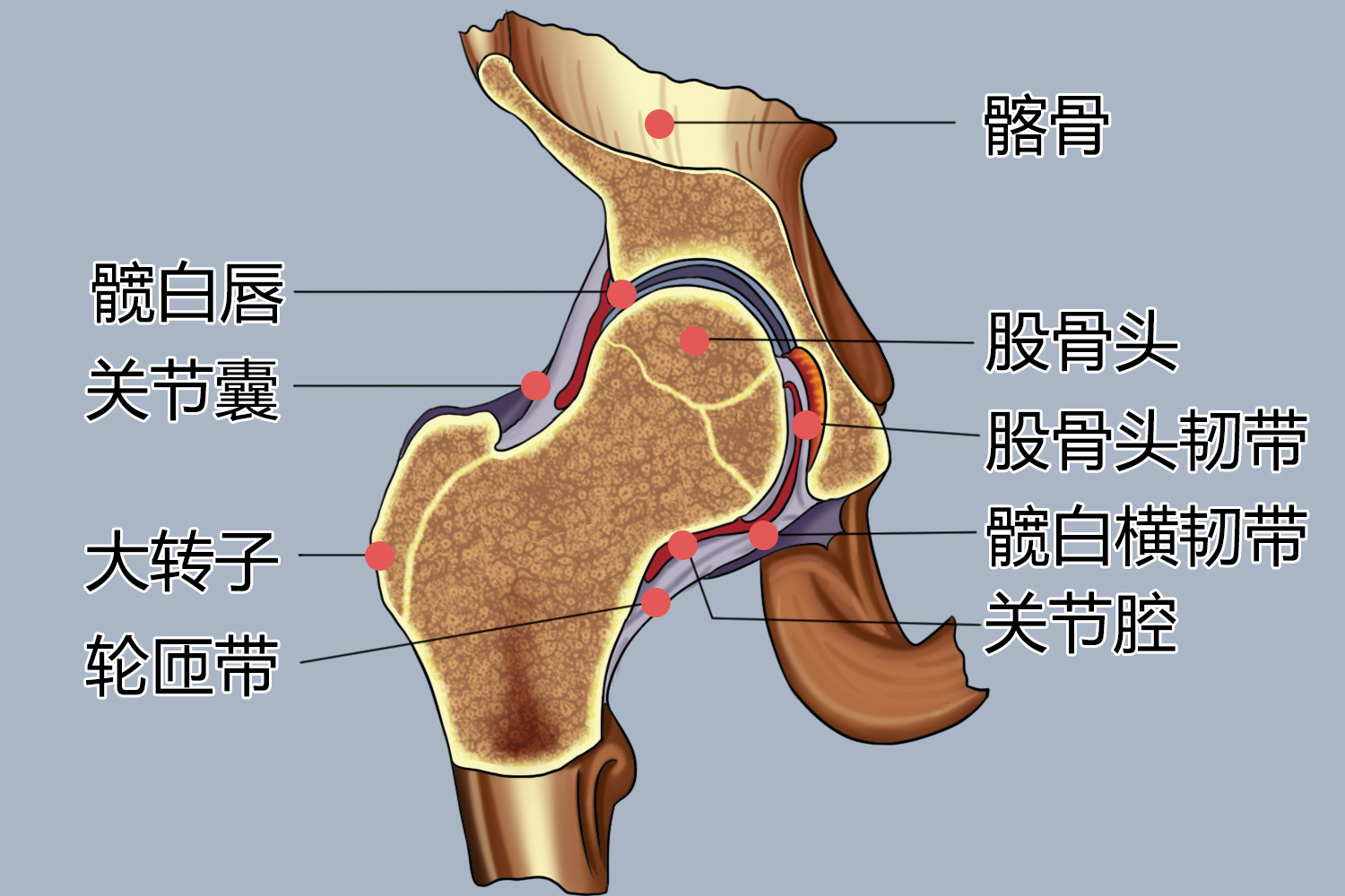 - 髋在医学上主要指的是髋关节,髋关节是大腿与躯干连接的重要部位,由髋臼、股骨头、关节囊、韧带以及周围的肌肉群等共同构成。