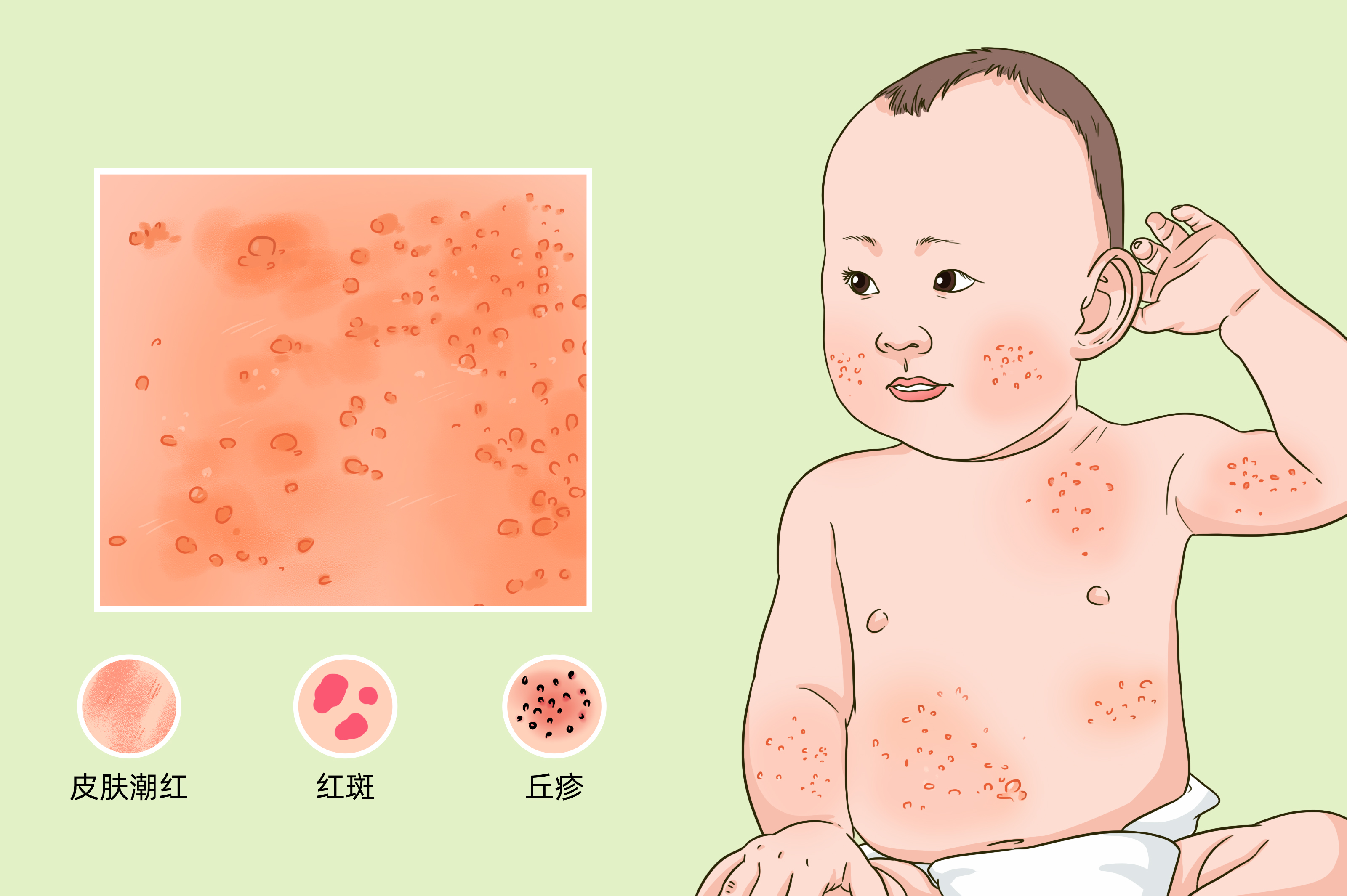 - 皮损表现:红斑基础上的针尖至粟粒大小丘疹、丘疱疹,严重时可出现小水疱,常融合成片,境界不清楚。皮损周边丘疱疹逐渐稀疏,常因搔抓形成点状糜烂面,有明显浆液性渗出。