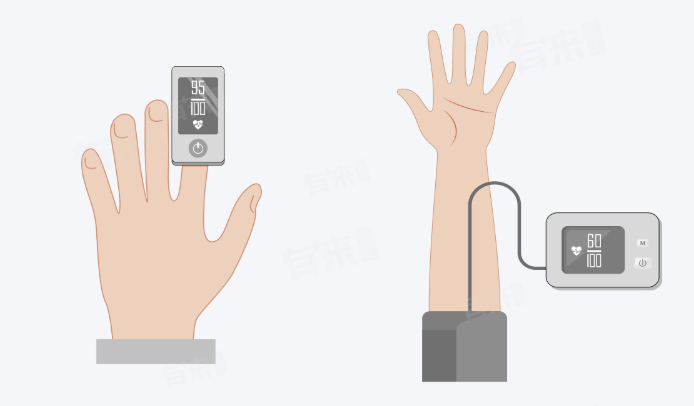 - 具体来说,脉搏血氧仪使用两种波长的发光二极管发出的红色与红外光透过身体的外周部位(如手指或耳垂),由对侧的光敏传感器检测到透射的光信号。由于氧合血红蛋白和还原血红蛋白在可见光和接近红外线的频谱范围内具有不同的吸收特性,因此可以通过计算所吸收的这两种光谱的比率,来得出血氧饱和度。同时,脉搏血氧仪还能准确地测量出脉搏的频率和强度,从而反映出心脏功能和血液循环状况。