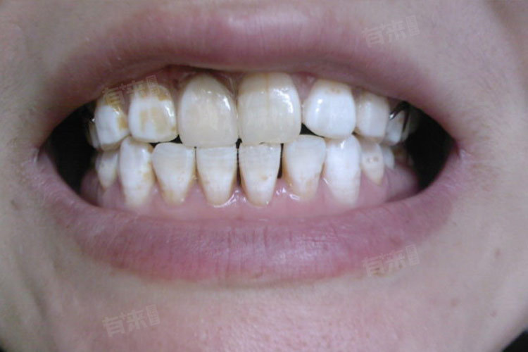 6、氟斑牙:氟斑牙是由于牙齿发育过程中过量接触氟化物所致。在高氟地区生活或使用了含氟量过高的牙膏和水源,都可能导致氟斑牙的形成。氟斑牙患者的牙齿表面可能会出现白色的斑块或条纹。