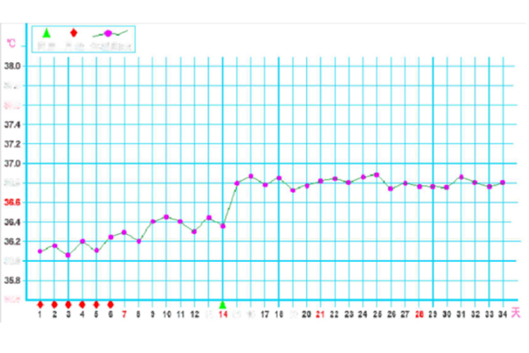 - 在正常月经周期中,黄体酮水平在排卵后升高,使体温在排卵后的黄体期相比排卵前升高约0.3°C-0.5°C。如果卵子没有受精,黄体会逐渐退化,黄体酮水平随之下降,体温也会回到之前的水平,随后可能会出现月经来潮。