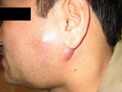 6、腮腺肿瘤:腮腺位于耳垂下前方,如果腮腺发生肿瘤,可能会延伸至耳后区域,肿瘤可为良性或恶性,良性肿瘤多生长缓慢,表面光滑;恶性肿瘤则生长迅速,质地坚硬,边界不清,可伴有面神经麻痹症状。