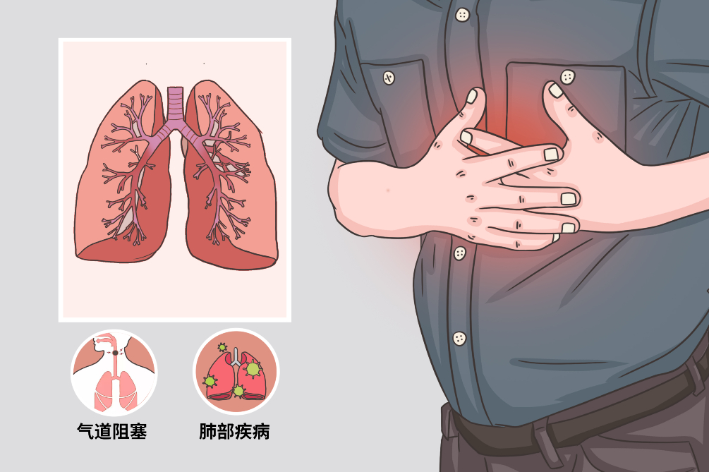 5、慢性阻塞性肺病:包括慢性支气管炎和肺气肿,导致气道狭窄、呼吸急促、咳嗽和胸闷。