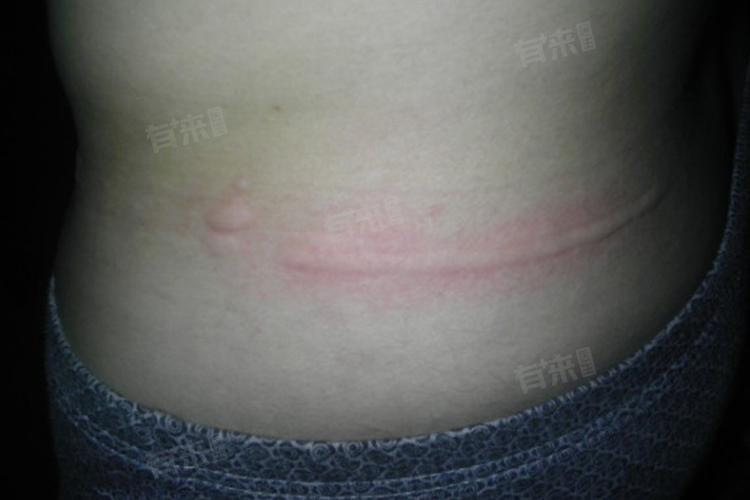 3、湿疹:是一种常见的过敏性炎症性皮肤病,病因复杂。可能由于局部皮肤多汗、摩擦、透气性差等因素诱发,表现为裤腰一圈出现红斑基础上的密集小丘疹、丘疱疹,瘙痒剧烈,搔抓后可出现糜烂、渗液,皮疹常呈对称性分布,且容易反复发作。