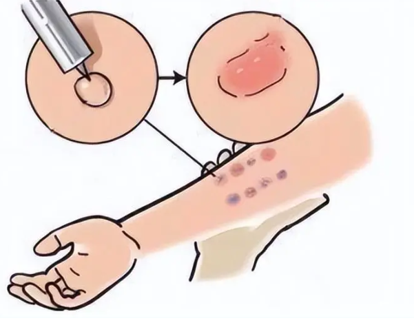 - 在注射后,需要在一定时间内(通常为48-72小时)观察注射部位的反应情况,主要观察红肿、硬结的大小和范围,根据硬结的大小和反应程度,将结果分为阴性、一般阳性、中度阳性和强阳性四个等级。