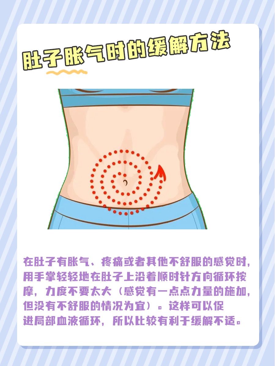2、腹部着凉:腹部受寒会使胃肠道的血液循环减慢,胃肠蠕动减弱,气体排出不畅。注意腹部保暖,可用热水袋热敷腹部,促进血液循环和胃肠蠕动。