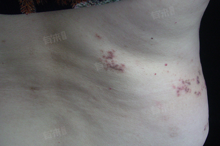 - 其形态可表现为斑丘疹、斑点、红斑或者小水疱,且在不同个体中,皮疹的类型可能有所差异。常见的表现是皮肤上出现大小不一、色泽红或粉红的斑丘疹或小斑点,这些皮疹通常没有明显的界限,散布在皮肤表面。部分患者可能会出现小水疱,水疱内充满透明液体,可能会伴随局部的疼痛或痒感。皮疹往往伴随着一定的灼热感或瘙痒,给患者带来不适。