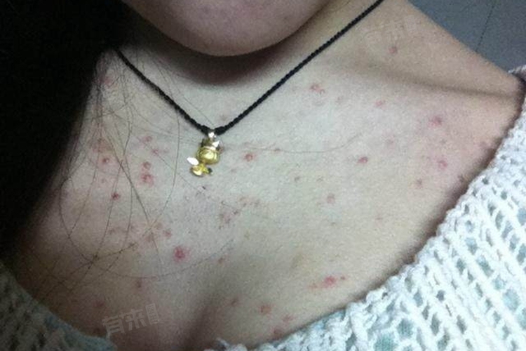 6、过敏反应:接触动物毛发、鱼、虾等过敏原后,可能产生过敏反应,在胸周围长出丘疹。