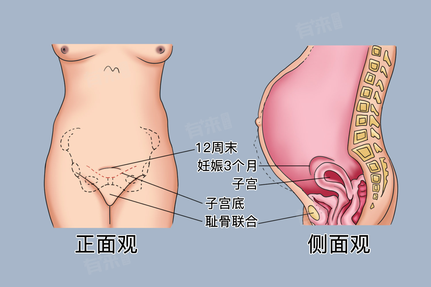 - 显怀通常指的是孕妇的腹部开始隆起,能够被人明显看出怀孕的状态,在怀孕的前三个月,胎儿还非常小,且主要发育的是胚胎和内脏器官,因此孕妇的腹部变化并不明显。同时由于孕妇的子宫在此阶段仍然位于盆腔内,没有上升到腹腔,所以腹部的外观变化也相对较小。