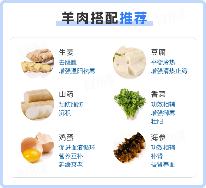 - 羊肉含有大量的蛋白质、维生素B群、矿物质如铁、锌等,以及具有抗寒保暖作用的烟酸。这些营养成分能够帮助人体补充能量,增强体质,提高免疫力。特别在寒冷的冬季,适量食用羊肉有助于身体产生热量,保持体温。虾则是一种高蛋白食物,每100克虾肉中蛋白质的含量高达20克以上。