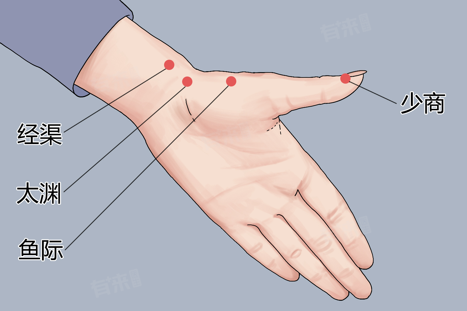 3、止咳平喘:肺主宣发肃降,少商穴能调节肺气,缓解因肺失宣降引起的咳嗽、气喘、胸闷等症。尤其对风热犯肺或痰热壅肺所致的急性咳嗽、哮喘发作有一定辅助治疗作用。