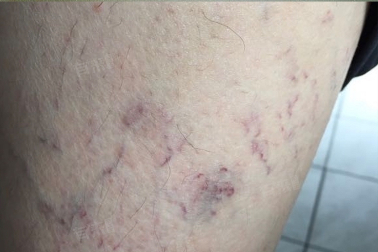4、紫癜:紫癜是皮下出血的一种表现,可能是过敏、血小板减少等原因引起的。当血液从血管内渗出到皮下组织时,就会在皮肤表面形成紫色瘀点、瘀斑,若出现在大腿外侧,就会表现为紫色血纹。过敏性紫癜患者,在接触过敏原后,身体会发生变态反应,导致血管通透性增加,血液外渗,从而出现紫色血纹。