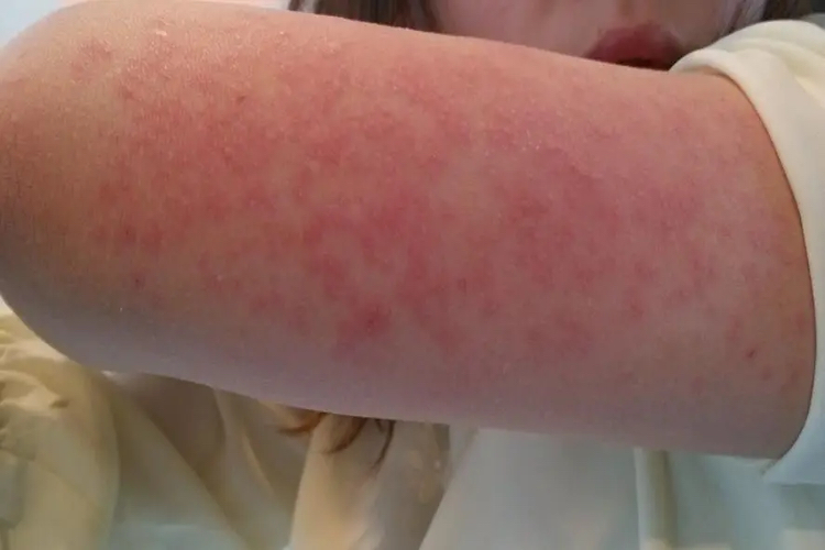 4、湿疹:湿疹可能导致胳膊上出现红色的小疙瘩,伴有瘙痒、渗出等症状。避免接触过敏原,保持皮肤清洁干燥,可以按照医生指导使用糖皮质激素类或抗组胺类等药物进行处理。