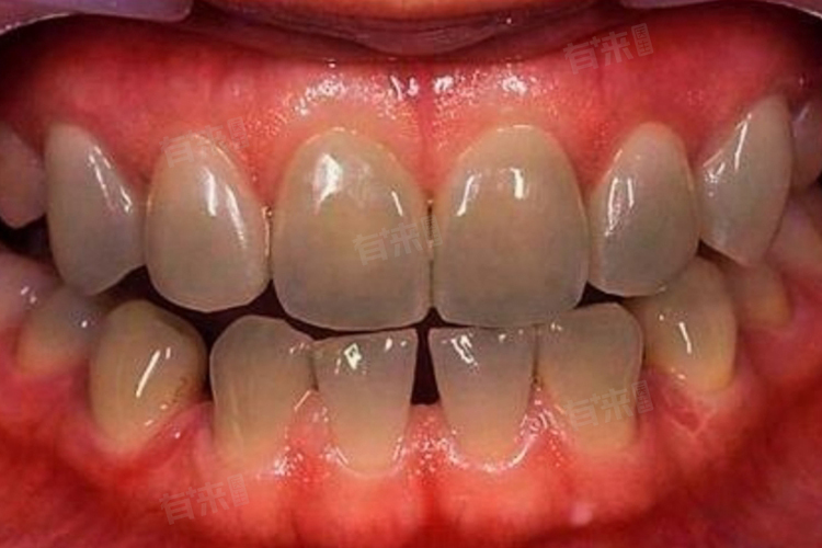 3、四环素牙:在牙齿发育期间服用四环素类药物,药物会与牙齿硬组织中的钙结合,形成稳定的复合物,导致牙齿变黑或呈灰褐色,严重时可影响牙齿发育,造成牙齿表面缺损。四环素牙属于内源性着色,轻度者可通过冷光美白改善,重度者需进行瓷贴面或全冠修复。