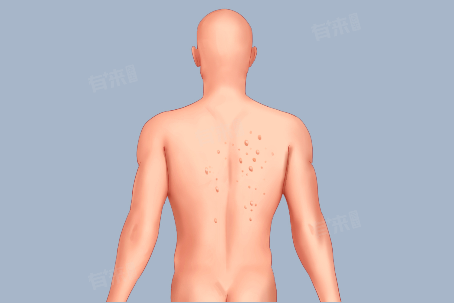 - 紧身、不透气的衣物会使后背皮肤处于闷热潮湿的环境中,会导致细菌滋生,应选择纯棉材质的衣物,尤其是贴身衣物,保持皮肤干爽。