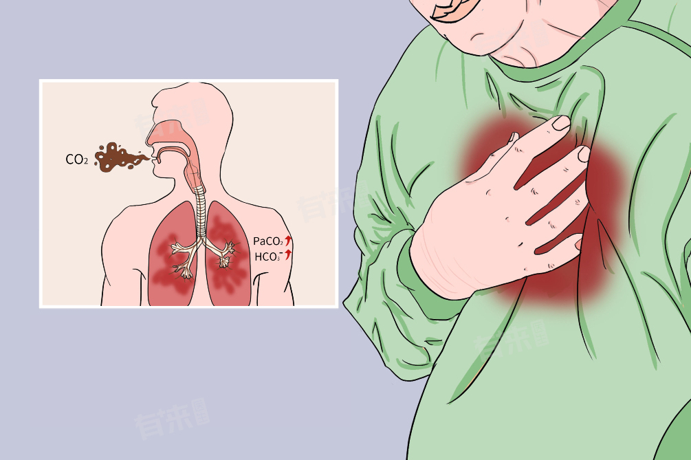 患者可能因肺部疾病而出现咳嗽症状,由于肺部功能受损,患者会感到明显的呼吸不畅,需要用力呼吸,表现为呼吸急促、呼吸困难。由于二氧化碳潴留引起的神经系统损害,患者还会出现明显的神经系统症状,包括头痛、视野模糊、烦躁不安,甚至出现震颤、意识模糊、谵妄和昏迷等症状。